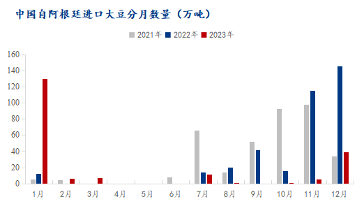 12月我国从阿根廷进口大豆量为38.98万吨,均为转基因大豆,环比增加617.82%,同比减少73.29%。阿根廷新作大豆产量有望丰收,较去年因干旱而减少的产量翻番,这意味着从2024年第二季度起阿根廷对华大豆出口有望加快。数据显示,2023年1-12月,我国自阿根廷进口大豆量为199.26万吨,与之对比去年同期为365万吨,减幅45.41%。