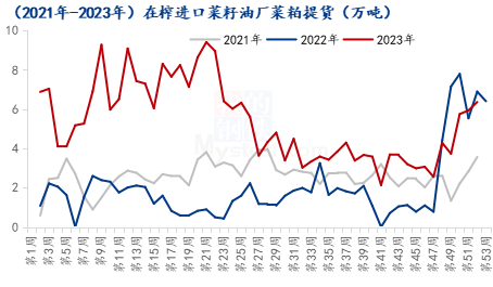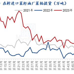 2023年中国进口菜籽油厂菜籽粕提货量为273.67万吨,较2022年增加163%%。从菜籽压榨产粕角度看,同菜油一致,华南菜籽大供应兑现,区别于菜油的是,菜粕水产旺季结束背景下,刚需减少。但是由于与豆粕的价差不断拉大,菜粕的性价比相对凸显,在一定程度上支撑菜粕在淡季的消费。不过四季度的供需极度不平衡的态势下,菜粕与相关产品的价格相比或仍处于弱势。但从整个年度来看,菜粕的提货增量明显,主要因素是国内菜籽压榨的增量,进口菜籽压榨粕挤压了一部分直接进口菜粕的市场。