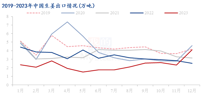 Mysteel解读:2023年生姜年度出口总结