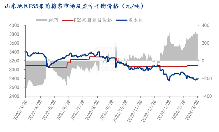图2 山东地区F55果葡糖浆市场及盈亏平衡价格