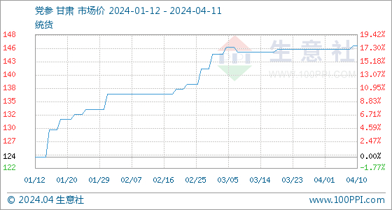 4月11日生意社党参基准价为146.60元/公斤