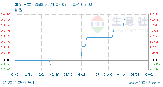 5月3日,生意社黄芪基准价为24.00元/公斤,与本月初持平。