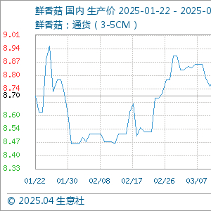 4月22日生意社鲜香菇基准价为8.39元/公斤