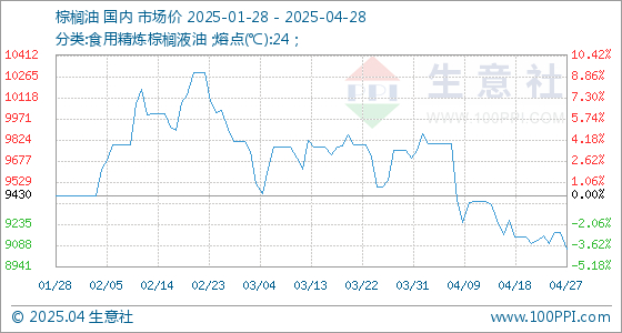 4月28日生意社棕榈油基准价为9064.00元/吨