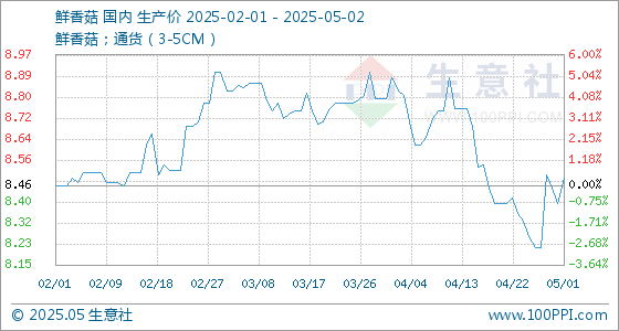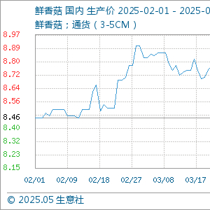 5月2日生意社鲜香菇基准价为8.49元/公斤 生意社-大宗商品数据商 上海生意社信息服务有限公司官方账号 2025.05.0208:30 关注 生意社05月02日讯 5月2日,生意社鲜香菇基准价为8.49元/公斤,与本月初(8.39元/公斤)相比,上涨了1.19%。 (文章来源:生意社)