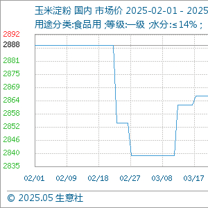 5月2日,生意社玉米淀粉基准价为2846.00元/吨,与本月初持平。