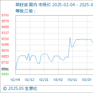 5月5日,生意社菜籽油基准价为9378.33元/吨,与本月初持平。