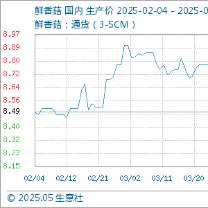 5月5日生意社鲜香菇基准价为8.49元/公斤