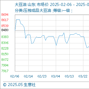 5月7日,生意社大豆油基准价为8056.00元/吨,与本月初(8126.00元/吨)相比,下降了-0.86%。
