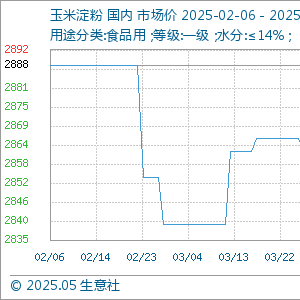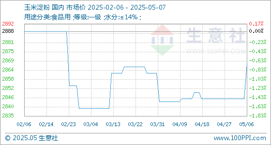 5月7日生意社玉米淀粉基准价为2868.00元/吨