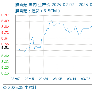 5月8日,生意社鲜香菇基准价为8.41元/公斤,与本月初(8.39元/公斤)相比,上涨了0.24%。