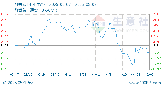 5月8日生意社鲜香菇基准价为8.41元/公斤