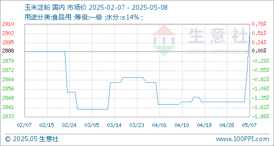 5月8日生意社玉米淀粉基准价为2904.00元/吨