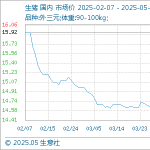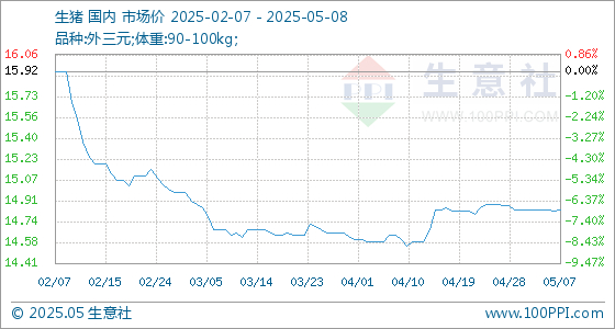 5月8日生意社生猪基准价为14.83元/公斤