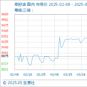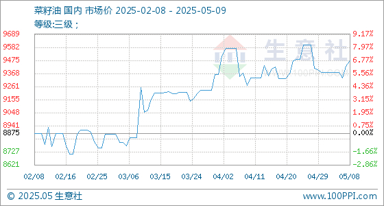 5月9日生意社菜籽油基准价为9471.67元/吨