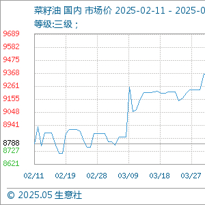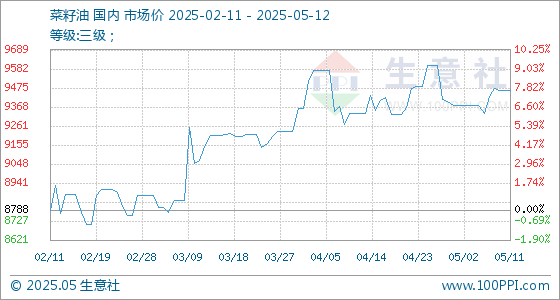 5月12日生意社菜籽油基准价为9463.33元/吨