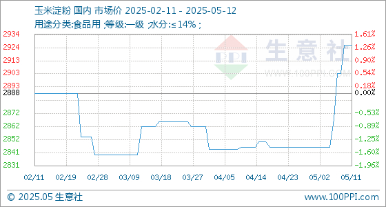 5月12日生意社玉米淀粉基准价为2926.00元/吨