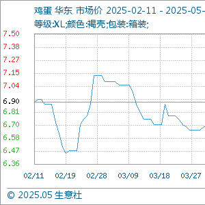 5月12日,生意社鸡蛋基准价为6.45元/公斤,与本月初(6.75元/公斤)相比,下降了-4.44%。