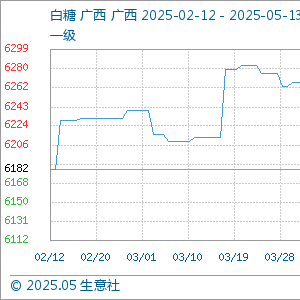 5月13日生意社白糖基准价为6150.00元/吨