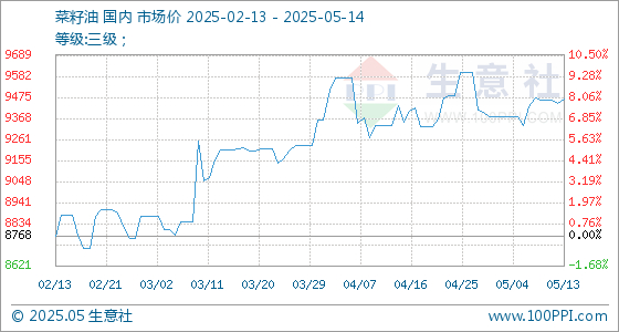 5月14日生意社菜籽油基准价为9468.33元/吨