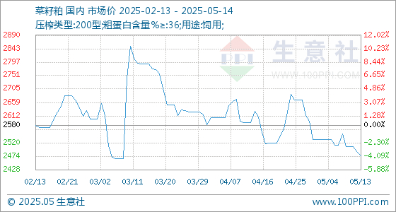 5月14日生意社菜籽粕基准价为2476.67元/吨