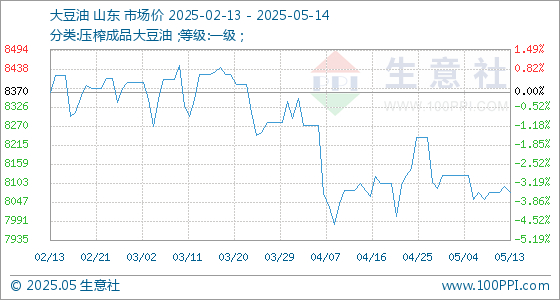 5月14日生意社大豆油基准价为8076.00元/吨