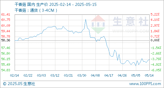 5月15日生意社干香菇基准价为56.12元/公斤