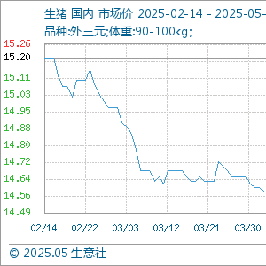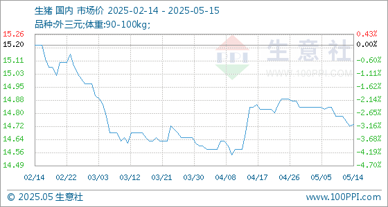 5月15日生意社生猪基准价为14.73元/公斤