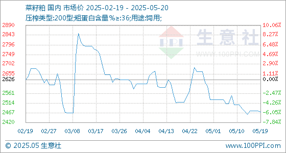 5月20日生意社菜籽粕基准价为2471.67元/吨