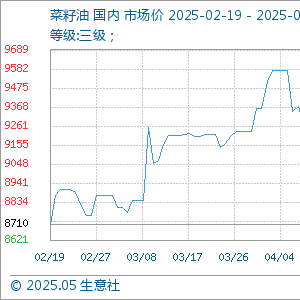 5月20日,生意社菜籽油基准价为9475.00元/吨,与本月初(9378.33元/吨)相比,上涨了1.03%。