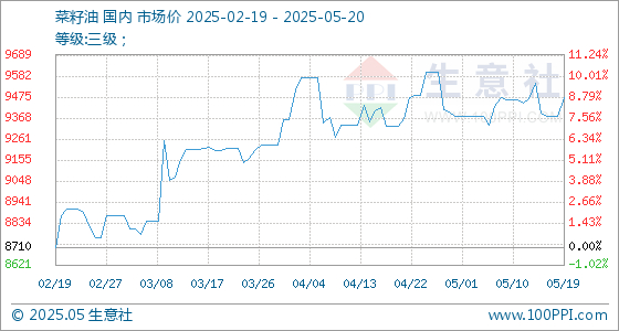 5月20日生意社菜籽油基准价为9475.00元/吨