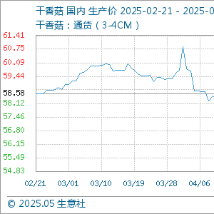 5月22日生意社干香菇基准价为55.62元/公斤