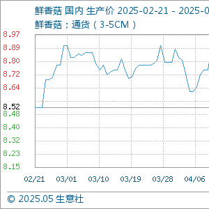 5月22日生意社鲜香菇基准价为8.69元/公斤