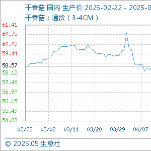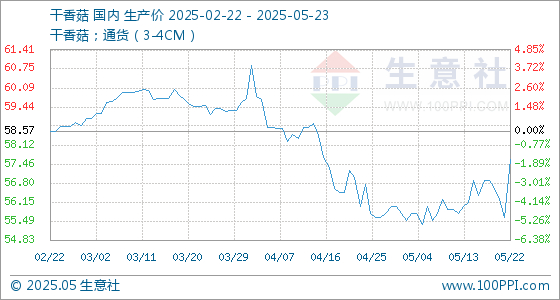 5月23日生意社干香菇基准价为57.62元/公斤