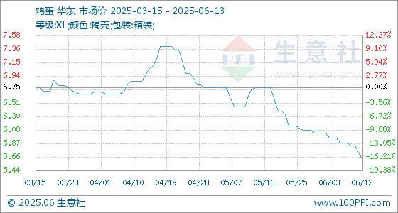 6月13日生意社鸡蛋基准价为5.62元/公斤