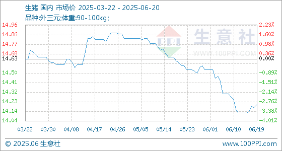 6月20日生意社生猪基准价为14.20元/公斤