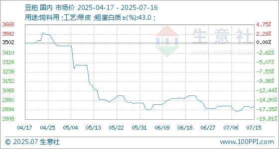 7月16日生意社豆粕基准价为2924.00元/吨