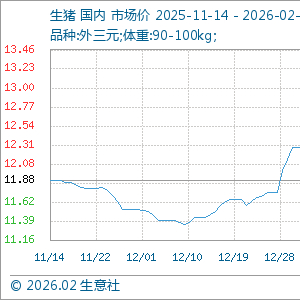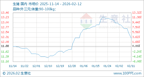 2月12日,生意社生猪基准价为12.25元/公斤,与本月初(12.98元/公斤)相比,下降了5.62%。