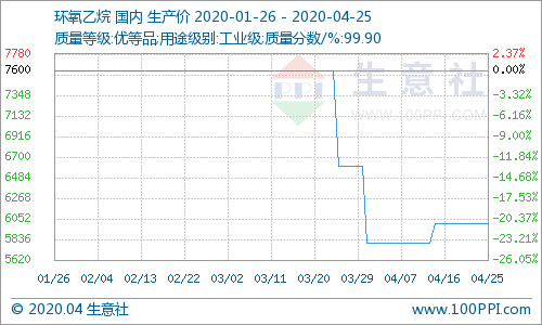 另一方面,环氧乙烷是广谱、高效的气体杀菌消毒剂,对消毒物品的穿透力强,可达到物品深部度,可以杀灭数病原微生物,包括细菌繁殖体、芽孢、病毒和真菌。环氧乙烷被应用于一次性口罩消毒灭菌,尽管当前口罩产量较大,但口罩消毒对环氧乙烷需求量甚少,对环氧乙烷未形成利好刺激。