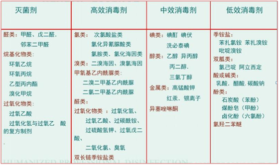 按照消毒功效消毒液又可以分为:高效消毒液、中效消毒液、低效消毒液和灭菌剂。其中高效消毒液是指可杀灭一些细菌繁殖体、病毒、真菌等。中效消毒液是指可杀灭分支杆菌、真菌、病毒以及细胞繁殖体等微生物的消毒液。低效消毒液指可杀灭细菌繁殖体和亲脂病毒的消毒液。其中含氯消毒液、过氧化物消毒液大多属于高效消毒液,乙醇、异丙醇和碘类消毒液属于中效消毒液,季铵盐类消毒液属于低效消毒液。甲醛、烷基化合物和过氧化物属于灭菌剂。