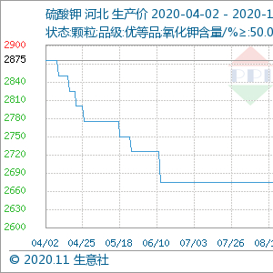 生意社硫酸钾分析师认为: 目前氯化钾价格已经处于一个相对高位,硫酸钾在经过一段时间的试探后后开始回调。在成本支撑下,预计未来硫酸钾价格在稳定吃基础上有小幅上升。
