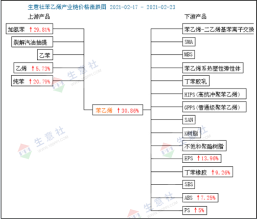 苯乙烯市场整体大幅上涨。成本端看,春节期间,油价利好不断,苯乙烯成本继续上移。而纯苯港口库存处于下降通道中,加之原油提振,预计短期纯苯重心将继续走高,利好苯乙烯走势。供应端看,目前国内供应维持高位,但进口处于低位,且有出口套利空间。目前国外苯乙烯装置故障较多,同时3、4月份亚洲装置有集中检修的计划,预计进口货源供应持续偏紧,预计国内华东主港压力不大,低库存将继续支撑苯乙烯价格。下游方面,随着春节假期的结束,三大下游的需求也逐渐恢复正常水平,给苯乙烯价格上涨带来支撑。 原油或将在通胀和经济复苏预期下继续走强,而苯乙烯受此影响下或将继续走高,据估计,国际装置意外关停,计划外关停装置增加,预计3-5月份进口数量将下滑,到港数量预计减少,供应减少情况下,生意社预计短期苯乙烯继续维持高位运行。