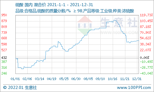 生意社:2021年硫酸价格大涨 全年涨幅49.13%