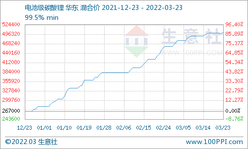 生意社:2022年3月23日碳酸锂价格稍有上探