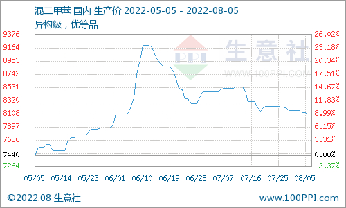 生意社:本周混二甲苯小幅走软(2022.8.1-8.5)