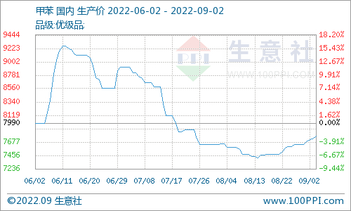 生意社:利好仍存 本周甲苯延续涨势(2022.8.29-9.2)