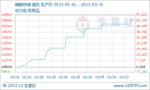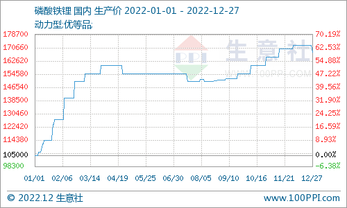 生意社:2022年磷酸铁锂持续上行 全年上涨60%
