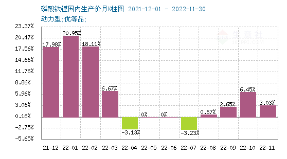 生意社磷酸铁锂分析师认为:目前磷酸铁锂处于匀速上行阶段,2022年新能源车和储能行业的快速发展,磷酸铁锂产能增长迅速,预计2023年随着上游原料碳酸锂的供给得到缓解,磷酸铁铁锂价格保持稳中偏上运行,不会大幅度价格上涨。