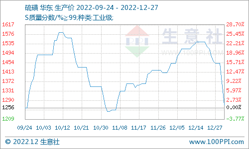 原料方面:华东地区硫磺行情弱势下行,随着冬储肥市场平稳推进,下游磷铵价格走高,终端囤货意向减弱,同时原料硫磺采购转为按需跟进,炼厂方面开工正常,由于不可抗力因素,物流运输受阻,厂家出货受限,库存累积,为缓解库存压力,硫磺报价持续下调。截至23日,山东地区炼厂固体硫磺主流价格在1340-1540元/吨左右,液体硫磺主流价格在1400-1470元/吨。
