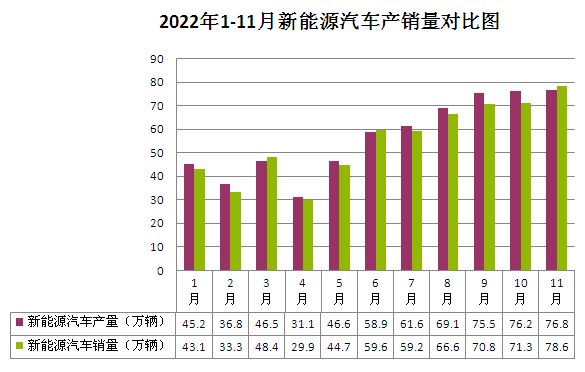 随着我国新能源汽车行业的蓬勃发展,中国已经成为全球新能源产业的中心,我国新能源汽车市场保持高速增长。2022年1-11月,我国新能源汽车产销分别完成625.3万辆和606.7万辆,同比均增长1倍,市场占有率达到25%,这也带来了巨大的锂电池需求。在下游材料及终端市场的高需求带动下,全年碳酸锂价格仍保持高位运行。